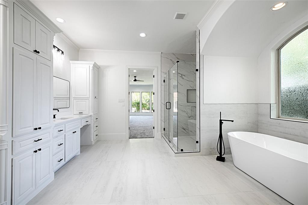 Step into this fully updated luxurious residence on a large corner lot in the heart of North Dallas where chic and elegance meet. Upon entry you will be greeted with vaulted ceilings and an exquisite grand double staircase. Inside a welcoming dining and living area enhanced with natural sunlight welcome you and seamlessy flow into the kitchen. The study is enhanced with built in shelving and equisite moldings. The heart of this home, the kitchen, includes stainless steel appliances a 6 range Wolf stove top, warming drawer, double oven, double sinks, double dishwashers, a pot filler and an oversized pantry making it a chef's dream. Enjoy the elegance of hardwood floors throughout the main areas of the home creating a warm and inviting atmosphere. Primary suite located on the first floor is a retreat with a spa like bathroom and spacious closets including cedar closets. Second story includes 3 bedrooms each with an en suite bathroom, a media room, game room, and a charming balcony overlooking the backyard. The circular drive compounded with the 4 car garage allows for ample parking and storage. House is located in a sought after private school corridor, near the Cooper fitness center, and close to shopping, dining, and transportation.